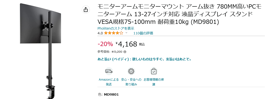 立ち環境構築用に長いポールのモニターアーム欲しいならこれ一択じゃね?